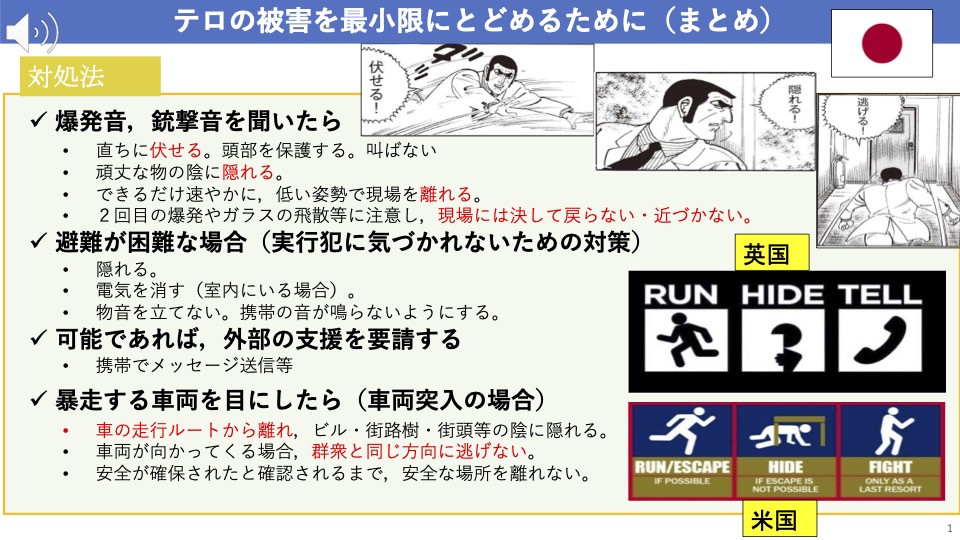 「あなたがテロ、銃・ナイフ・爆弾等の被害に巻き込まれた時のために」